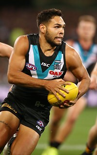 ADELAIDE, AUSTRALIA - APRIL 08: Jarman Impey of the Power runs with the ball during the round three AFL match between the Port Adelaide Power and the Adelaide Crows at Adelaide Oval on April 8, 2017 in Adelaide, Australia. (Photo by Morne de Klerk/Getty Images/AFL Media)
