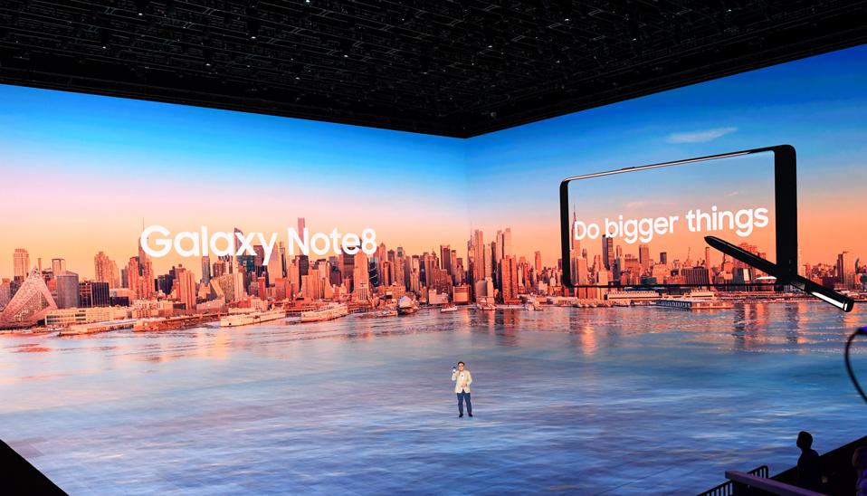 DJ Koh, Samsung President/Mobile Communications Business, speaks about the Samsung Galaxy Note 8 as it was unveiled at the Samsung Galaxy Unpacked 2017 event (Photo: Don Emmert/AFP/Getty Images)