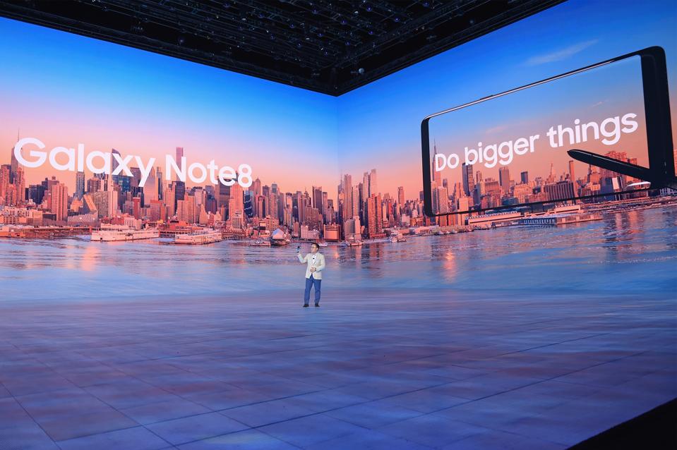 The Samsung Galaxy Note 8 is unveiled at the Samsung Galaxy Unpacked 2017 event on August 23, 2017 in New York. (Photo: Don Emmert/AFP/Getty Images)