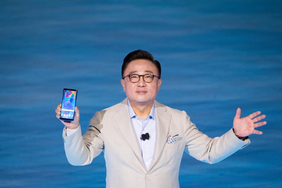 DJ Koh, president of mobile communications business at Samsung, holds up the new Samsung Galaxy Note8 (Photo by Drew Angerer/Getty Images)