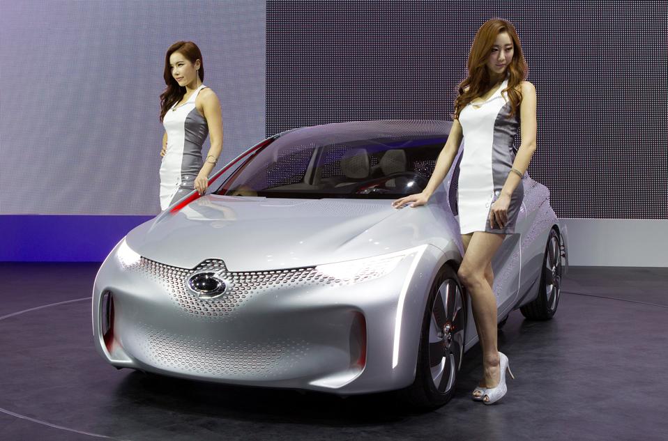 Models pose next to a Renault Samsung's concept car EOLAB at the Seoul Motor Show 2015 at KINTEX on April 02, 2015 in Seoul, South Korea. (Photo by Kim Jong Hyun/Anadolu Agency/Getty Images)
